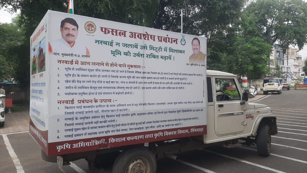 उन्होंने बताया कि जिले में मक्का, गेहुँ, गन्ना, सोयाबीन आदि की फसल आने के बाद खेत में बची नरवाई को जलाते हैं, जिससे पर्यावरण प्रदूषित होता है। मिट्टी में नाइट्रोजन की कमी से खेत की ऊर्वरा शक्ति कम होती है। पोषक तत्व नष्ट होते है । फसलों की पैदावार कम होती है। जमीन में लाभदायक जीवाणुओं की क्रियाशीलता कम हो जाती है। जमीन में केंचुओं की संख्या कम हो जाती है । इसके साथ ही प्रशासन की तरफ से नरवाई जलाने में कानूनी कार्यवाही का प्रावधान है।