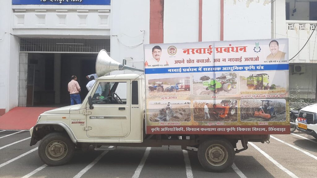 उन्होंने सभी किसानों से कृषि अभियांत्रिकी, किसान कल्याण तथा कृषि विकास विभाग एवं जिला प्रशासन छिन्दवाड़ा की तरफ से अपील की है कि खेत में बची नरवाई को न जलायें, इसके प्रबंधन के लिये रोटावेटर, मल्चर, श्रेडर, सुपर सीडर जैसे आधुनिक यंत्रों की मदद से जमीन में मिला दें । बची नरवाई को स्ट्रारीपर जैसे यंत्रों की मदद से भूंसा बना लें । खड़ी नरवाई में हैप्पी सीडर, सुपर सीडर, जिरोटिल, सीडड्रिल जैसे यंत्रों के माध्यम से अगली फसल की सीधी बोआई करें । उन्होंने बताया कि नरवाई प्रबंधन से मृदा की जलधारण क्षमता बढ़ती है। मृदा में जीवांश की मात्रा बढ़ती है। मृदा का उपजाऊपन बढ़ता है जिससे उत्पादन बढ़ता है एवं पशुधन के लिये आहार की उपलब्धता होती है।
