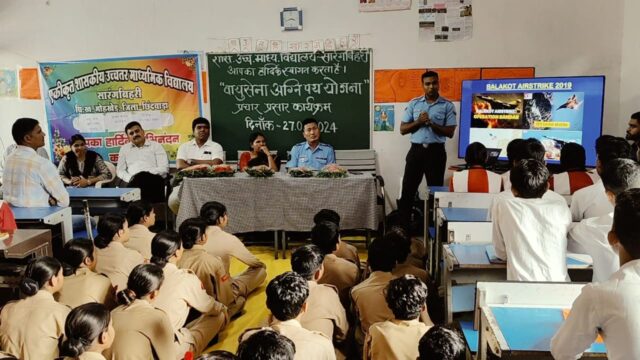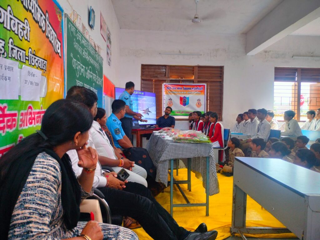 छिंदवाड़ा: वायु सेना के अधिकारी ने जिले में तीन दिवसीय कार्यक्रम के अंतिम दिन शुक्रवार को शासकीय हायर सेकेंडरी स्कूल सारंगबिहरी (मोहखेड़) में कैडेट्स / छात्रों को अग्निवीर वायु, अग्निपथ योजना के बारे में वायु सेना के प्रतिनिधियों द्वारा जानकारी और उचित मार्गदर्शन किया गया |