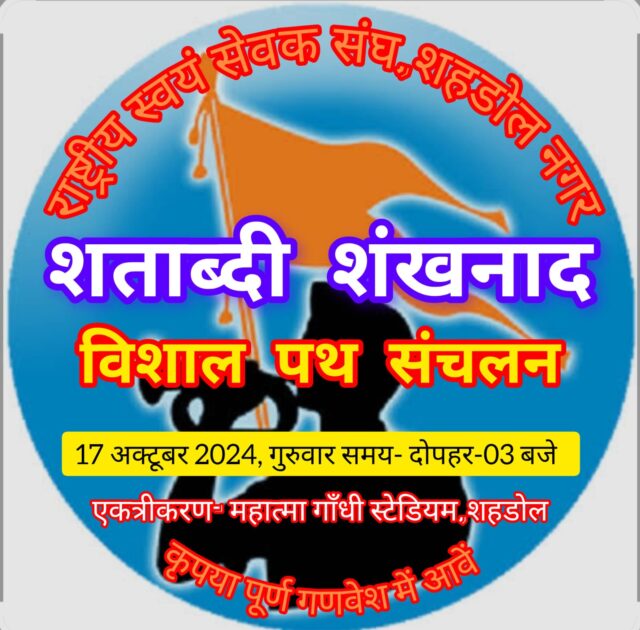 जिला कार्यवाह मनीष द्विवेदी द्वारा जानकारी देते हुए बताया गया 17 अक्टूबर 2024 दिन गुरुवार को शहडोल जिला मुख्यालय में दोपहर 3 बजे स्थानीय महात्मा गांधी स्टेडियम में सभी स्वयंसेवकों का एकत्रीकरण होगा जहा से पूरे जिले से आने वाले स्वयंसेवकों द्वारा आरएसएस की स्थापना के शताब्दी प्रवेश वर्ष के उपलक्ष्य में विशाल पथ संचलन पूर्ण गदवेश दंड सहित किया जाएगा जो नगर के विभिन्न स्थानों से होते हुए गांधी स्टेडियम में समाप्त होगी । कार्यक्रम में भारी संख्या में स्वयंसेवकों के आने की संभावना जताई जा रही है।वही विशाल पथ संचलन को लेकर संगठन स्तर पर जोरदार तैयारी की जा रही है