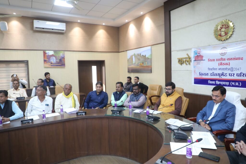 छिंदवाड़ा /11 जनवरी 2025/ जिले के विकास को नई दिशा देने और मध्यप्रदेश सरकार के वर्ष 2047 तक विकसित भारत और विकसित म.प्र. के विजन को साकार करने के उद्देश्य से कलेक्टर कार्यालय के सभाकक्ष में जिला स्तरीय जन संवाद कार्यक्रम का आयोजन किया गया।