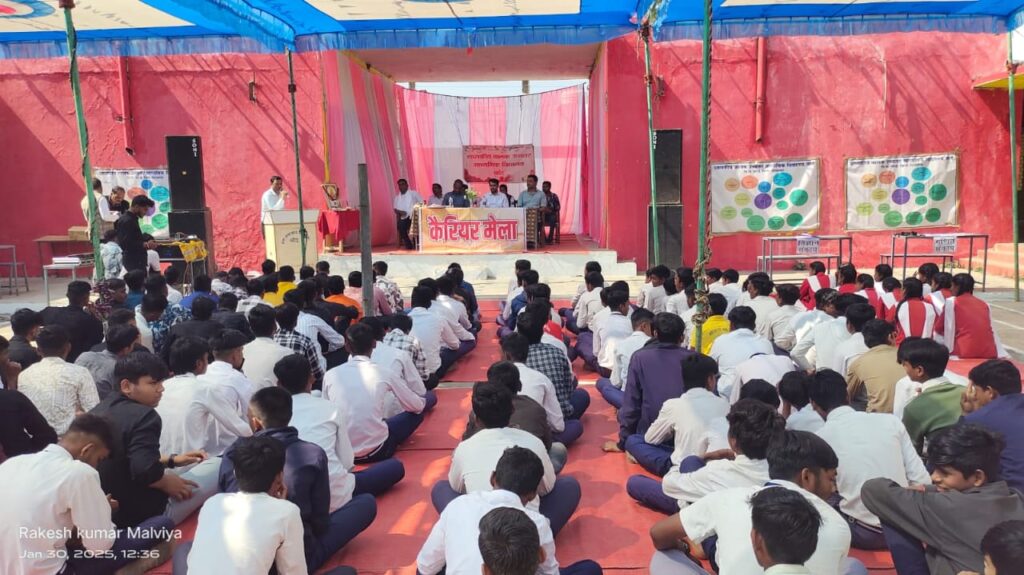 छिन्दवाड़ा/30 जनवरी 2025/ कलेक्टर श्री शीलेन्द्र सिंह के निर्देशानुसार जिला शिक्षा अधिकारी श्री जी.एस.बघेल के मार्गदर्शन में शासकीय बालक उच्चतर माध्यमिक विद्यालय चाँद में एक दिवसीय केरियर मेला का आयोजन नायब तहसीलदार श्री बाजपेयी, शाखा प्रबंधक सेंट्रल बैंक श्री यशवर्धन सिंह, समाजसेवी व्यवसायी श्री राजू वर्मा, आईटीआई के प्राचार्य श्री बजरंग धारसे, संकुल प्राचार्य श्री अनिल तागड़े व प्राचार्य श्री सी.डी.जंघेला की उपस्थिति में किया गया।