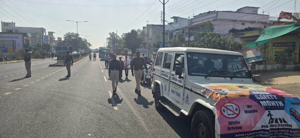 छिंदवाड़ा: छिंदवाड़ा पुलिस द्वारा अशोक लीलेंड ड्राइविंग स्कूल के साथ सड़क सुरक्षा सप्ताह के अंतर्गत यातायात नियमों की जागरूकता रैली एवं नुक्कड़ सभा का किया आयोजन।