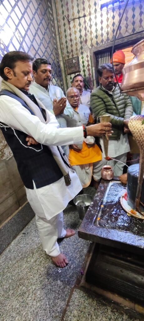 भोपाल: 10 जनवरी/ उप मुख्यमंत्री श्री राजेन्द्र शुक्ल ने जिला मुख्यालय उमरिया में सागरेश्वरनाथ मंदिर में रूद्राभिषेक किया। इस अवसर पर उन्होने दूध, दही, घी, गंगा जल, शहद से अभिषेक किया और आरती मे शामिल हुए ।