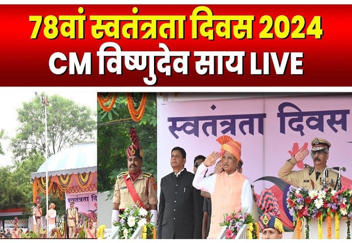 रायपुरः देश आज 78वां स्वतंत्रता दिवस मना रहा है। छत्तीसगढ़ में भी आजादी के इस पर्व को लेकर खासा उत्साह देखा जा रहा है। रायपुर के पुलिस परेड ग्राउंड में 78वें स्वतंत्रता दिवस का मुख्य समारोह में सीएम साय ने राष्ट्रीय ध्वज फहराया। इसके बाद सीएम साय ने परेड की सलामी ली। इस दौरान मुख्य सचिव अमिताभ जैन, DGP अशोक जुनेजा सहित कई अधिकारी कर्मचारी मौजूद थे।