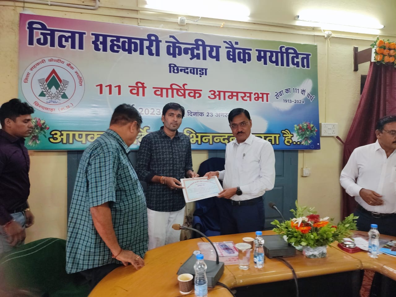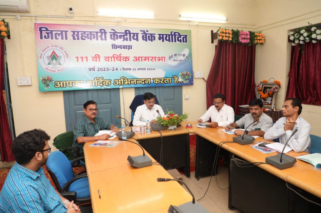 छिन्दवाड़ा: / 23 अगस्त 2024 / जिला सहकारी केन्द्रीय बैंक छिन्दवाड़ा की 111वी वार्षिक आमसभा कलेक्टर एवं बैंक प्रशासक श्री शीलेन्द्र सिंह की अध्यक्षता में आज बैंक मुख्यालय में संपन्न हुई। कलेक्टर श्री सिंह ने विगत वर्षों की तुलना में बैंक द्वारा वर्ष 2023-24 में की गई उल्लेखनीय प्रगति से अवगत कराते हुए अपना प्रशासकीय उद्धोधन दिया।