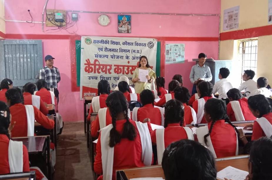 छिन्दवाड़ा: / 24 अगस्त 2024/ जिला रोजगार अधिकारी सुश्री माधुरी भलावी के मार्गदर्शन में जिला रोजगार कार्यालय छिंदवाड़ा द्वारा पांढुर्णा जिले के शासकीय उच्चतर माध्यमिक विद्यालय नांदनवाड़ी में कक्षा 12वी के छात्र-छात्राओं को कैरियर कॉउंसलिंग एवं रोजगार मार्गदर्शन प्रदान किया गया, जिसमें कैरियर काउंसलर सुश्री आराधना पवार एवं विषय विशेषज्ञ श्री कैलाश सोनारे ने विभिन्न जॉब प्रोफाइल एवं कोर्स की जानकारी दी । कैरियर कॉउंसलिंग में शाला प्राचार्य श्री एस.कुमार सिंगारे भी उपस्थित थे एवं टीचर स्टॉफ द्वारा सहयोग प्रदान किया गया ।