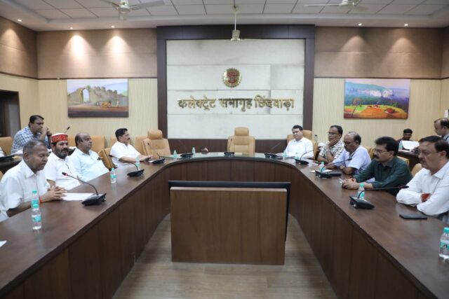 छिन्दवाड़ा/ 30 अगस्त 2024/ कलेक्टर श्री शीलेन्द्र सिंह के मार्गदर्शन में और एडीएम श्री के.सी. बोपचे की अध्यक्षता में आज कलेक्टर कार्यालय के सभाकक्ष में सिंधी समाज की समस्याओं को लेकर एक महत्वपूर्ण बैठक आयोजित की गई। बैठक में छिन्दवाड़ा एसडीएम श्री सुधीर जैन, सिंधी समाज के जिला संयोजक डॉ. कृष्णचंद हरजानी, समाज के अन्य प्रतिनिधि, गणमान्य नागरिक और संबंधित अधिकारीगण उपस्थित रहे।