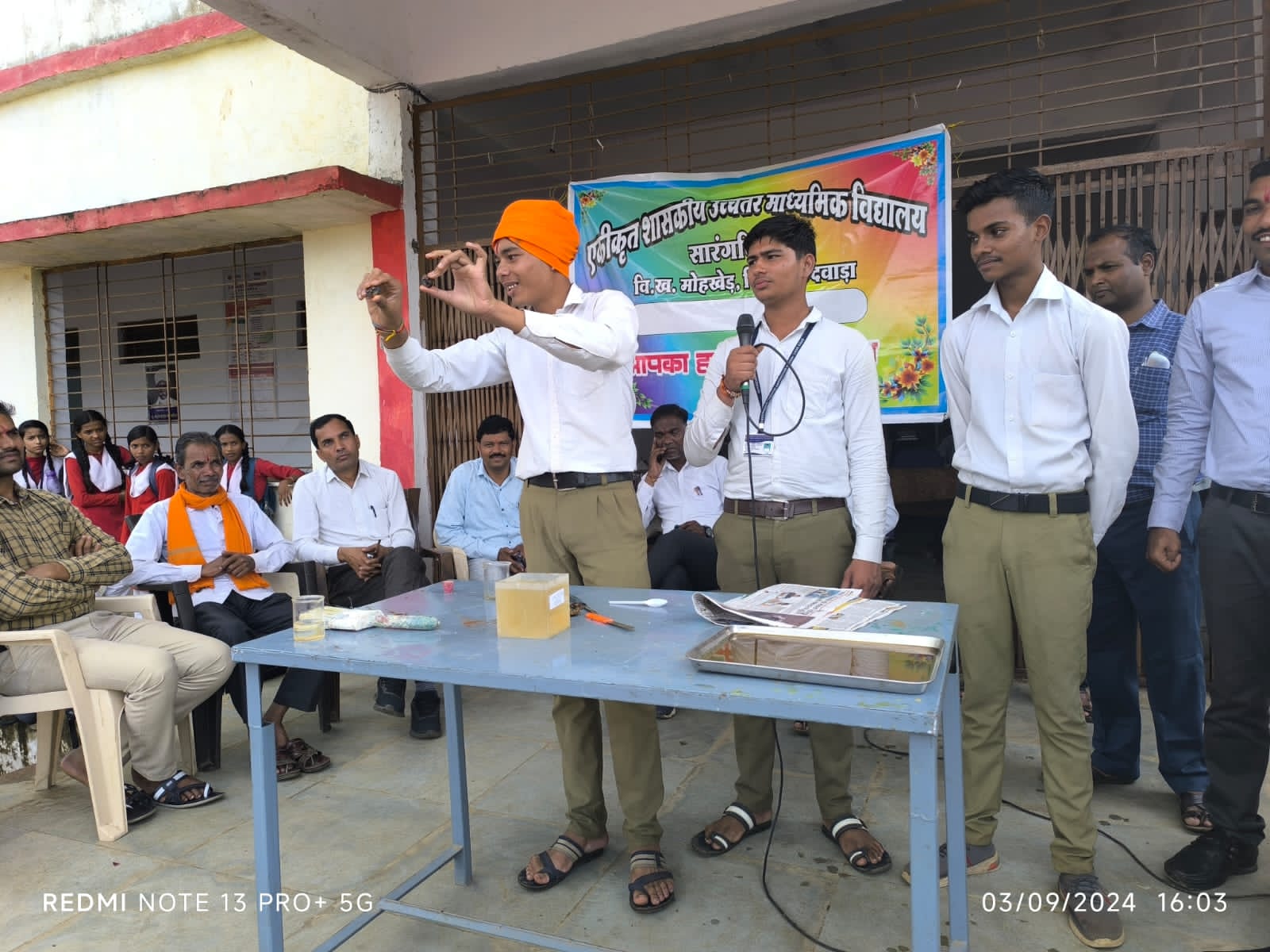 छिंदवाड़ा/सारंगबिहरी: एकीकृत शासकीय उच्चतर माध्यमिक विद्यालय सारंगबिहरी जादू नहीं विज्ञान का हुआ आयोजन। ग्राम के सरपंच गणेश फरकारे, एस एम डी सी सदस्य रूपेंद्र शेरके, और विद्यालय के समस्त स्टाफ की उपस्थिति में हुआ । जिसमे रसायन शिक्षक सुनील यादव एवम् प्रयोगशाला शिक्षक सूर्यकांत चोपड़े की सहायता से विद्यालय के छात्रों द्वारा बहुत सारे विज्ञान के प्रयोग जादू के रूप दिखाए गए जिसमें हवन कुंड में बिना माचिस आग लगाना, नींबू को काटकर खून निकलना, कोरे पेपर पर पानी के स्प्रे से रंग बिरंगे शब्दो को दिखाना, गुब्बारे को हवा में उड़ाना, हाथो में चुना लगाकर पानी डालकर पीला करना आदि जादू दिखाए। विद्यालय के शिक्षक संदीप चौरगडिया एवम् युगलकीशोर पशीने के द्वारा छात्रों एवम उपस्थित जनों को समझाया गया की ये जादू नहीं है, बल्कि यह रसायनो को मिलाने से रसायनिक अभिक्रिया होती है जिसमे अलग अलग क्रिया, प्रतिक्रिया और घटनाएं हुई। विद्यालय के प्राचार्य एच पी उइके सर द्वारा छात्रों को जानकारी दी गई की बाबाओं के द्वारा आम लोगो बेवकूफ बनाकर लूटते है जिससे कारण हमें लोगो को जागरूक करना है । वरिष्ठ शिक्षक कैलाश पराड़कर सर ने छात्रों को संबोधित करते हुए कहा कि ये सभी रसायन बहुत ही खतरनाक होते है इनका उपयोग न करे और न ही ऐसा कभी करे क्योंकी रसायन से दुर्घटना हो सकती है, जो भी प्रयोग करें शिक्षक की उपस्थिति में करें। इस दौरान विद्यालय के शिक्षक महेंद्र नागरे, सतीश गोनेकर, कन्हैया पहाडे, गोपाल चौरे, पांडुरंग खरपूसे, लोकेस उईके, संदेश कोडले, सेवाराम भादे, अनुराधा उईके, गीता डोंगरे, निर्मला धुर्वे, कंचन डिगरसे, सरला पराड़कर, किरण शेरके, चंद्रकला उइके आदि शिक्षक उपस्थित रहे।